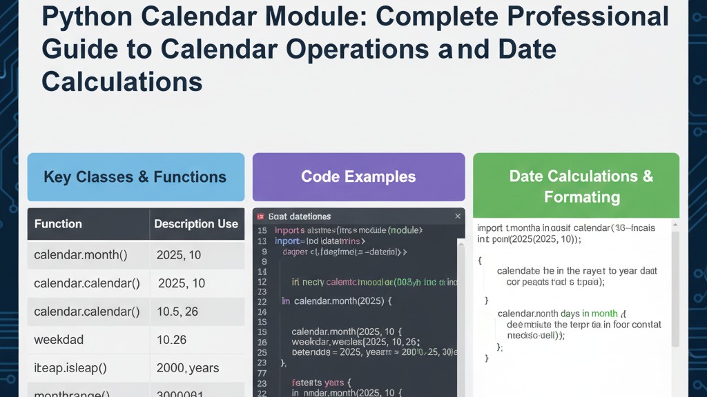 Introduction Calendar functionality serves as a cornerstone of modern software development, powering everything from scheduling applications and project management tools to reporting systems and data analysis platforms. Whether you’re building enterprise resource planning systems, creating user-friendly appointment schedulers, generating printable calendars, or analyzing temporal patterns in data, robust calendar manipulation capabilities prove essential. Python’s standard […]