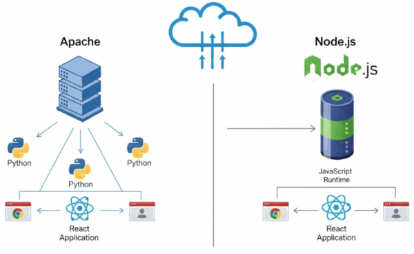 Apache vs Node.js: Web Server Architecture and Modern Web Development with React